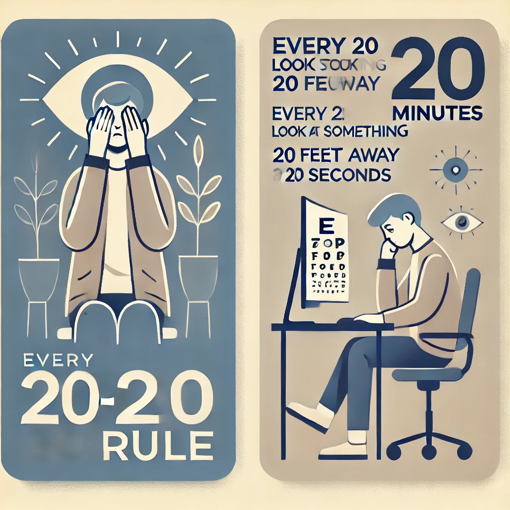 미국검안협회(AOA)는 디지털 기기로 인한 눈 피로를 예방하기 위해 ‘20-20-20 규칙’을 제안합니다. 20분마다 20피트(약 6미터) 떨어진 사물을 20초 동안 바라보는 방법입니다. 이 간단한 규칙은 모양체근의 긴장을 완화시키는 데 매우 효과적입니다.