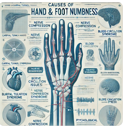 손발 저림은 다양한 원인으로 발생할 수 있습니다. 주요 원인은 아래와 같습니다: