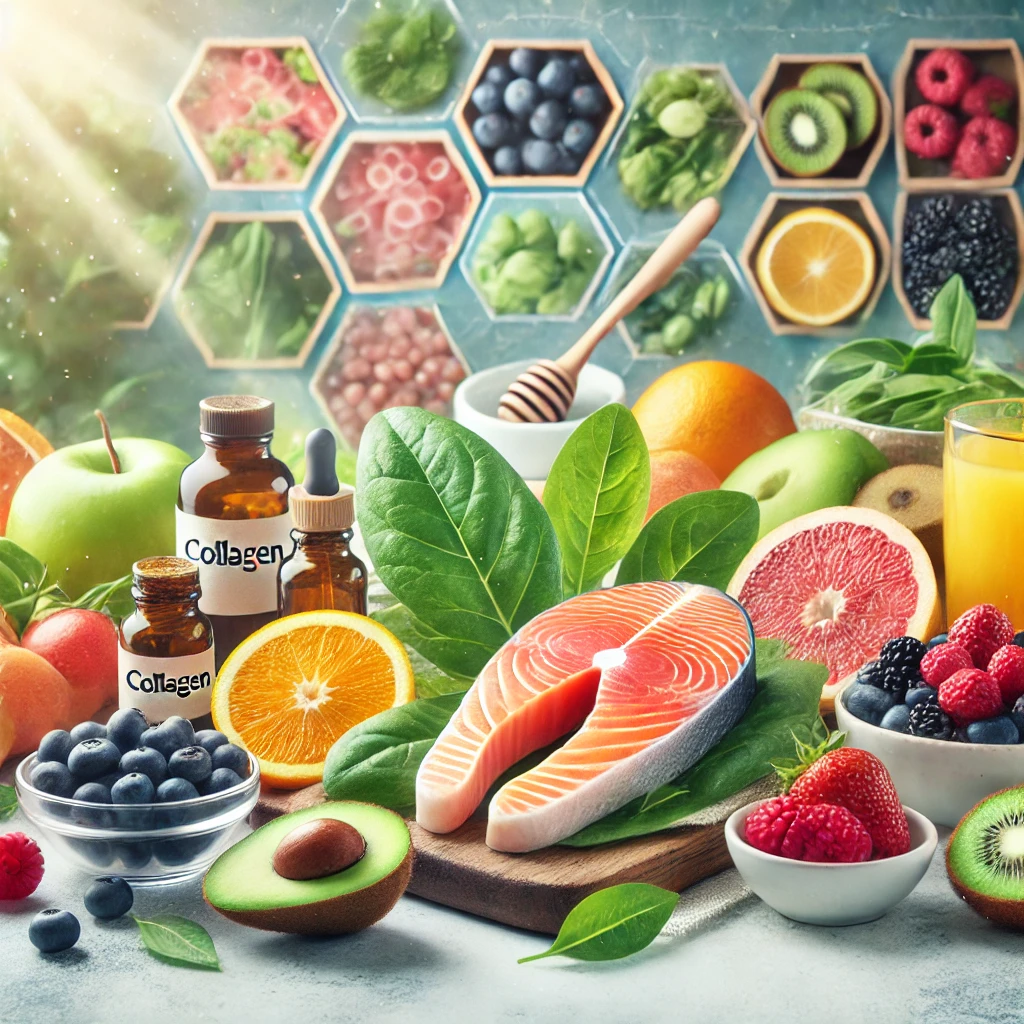 특히 콜라겐 생성을 촉진하려면 비타민 C가 필수적입니다. 비타민 C는 콜라겐 합성에 필요한 효소 작용을 활성화시키며, 항산화 효과로 콜라겐 분해를 방지합니다. 시트러스 과일, 키위, 브로콜리, 파프리카 등이 비타민 C의 좋은 공급원입니다.