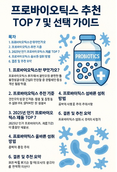 2025년 프로바이오틱스 추천 TOP 7 및 선택 가이드
