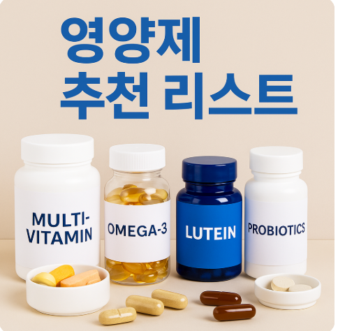 현대인의 건강을 위한 필수 아이템, 영양제 추천 리스트를 기능별로 정리했습니다. 종합비타민부터 루테인, 오메가3, 수면 영양제까지 건강 목표에 따라 필요한 제품을 찾을 수 있도록 구성했습니다.